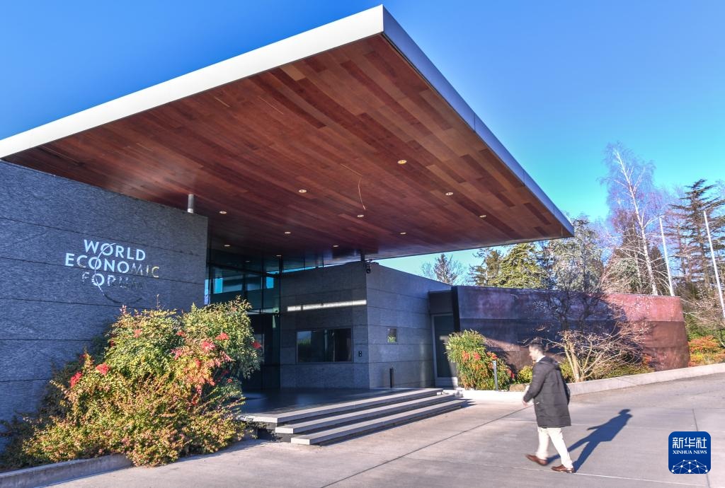 1月15日,在瑞士日内瓦,一名工作人员走进世界经济论坛总部。