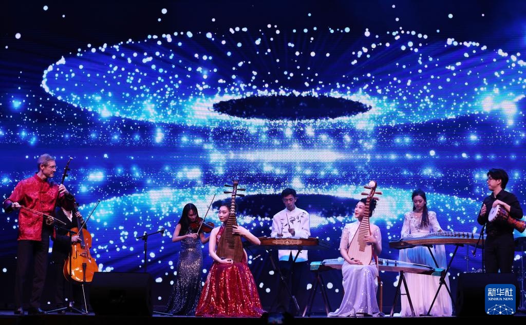 1月20日,星海民乐团的演员和法国音乐家在巴黎举行的“金蛇献瑞”巴黎春节联欢晚会上演奏中西室内乐。