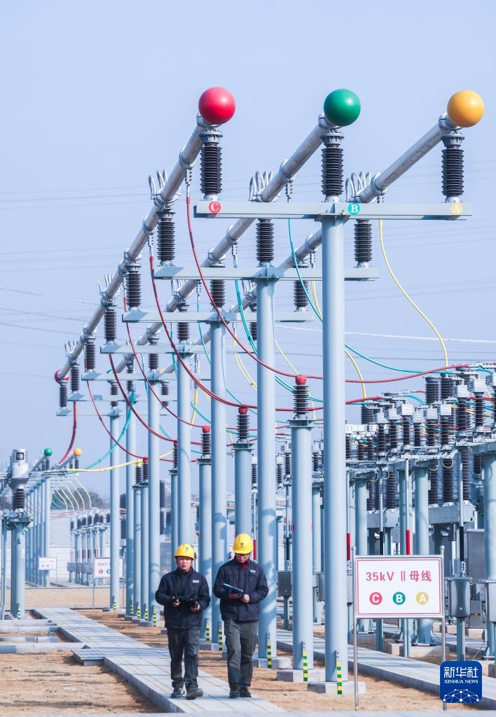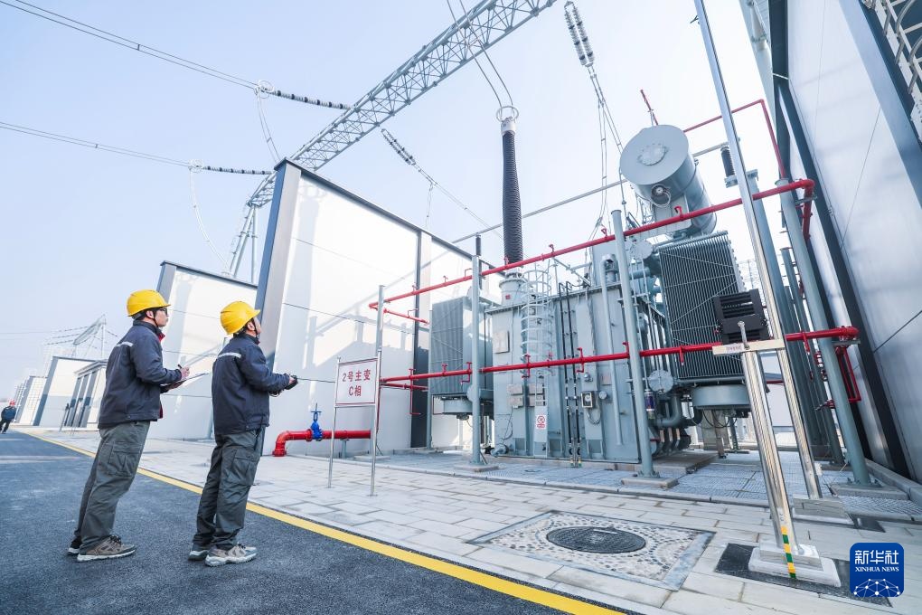 1月21日,在长兴500千伏输变电工程长兴变电站,工作人员巡查设备运行情况。