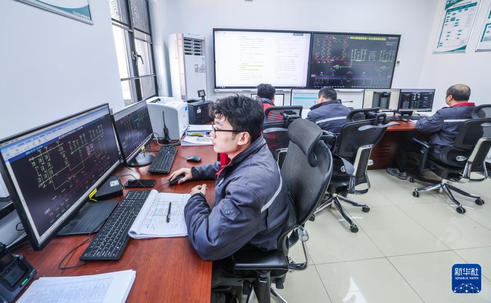 1月21日,工作人员在长兴500千伏输变电工程长兴变电站的主控室内作业。