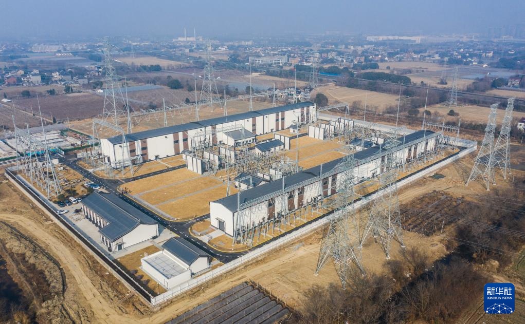1月21日拍摄的长兴500千伏输变电工程长兴变电站(无人机照片)。