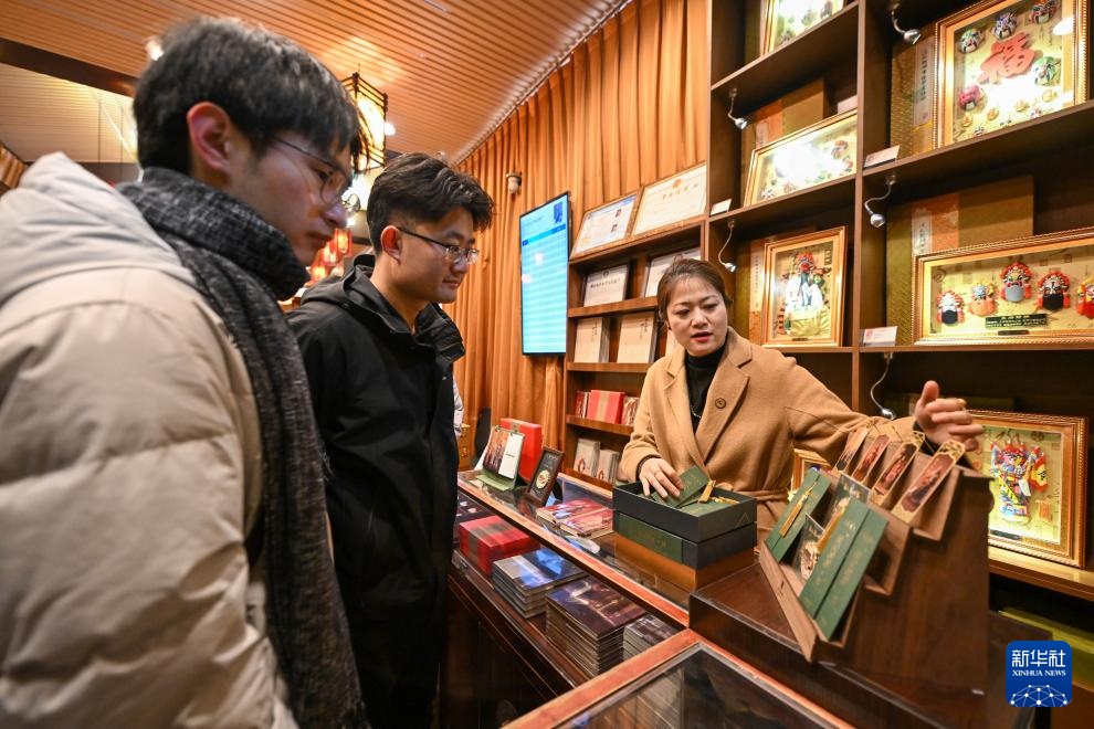 游客在天津古文化街泥人张世家选购文创产品(1月20日摄)。