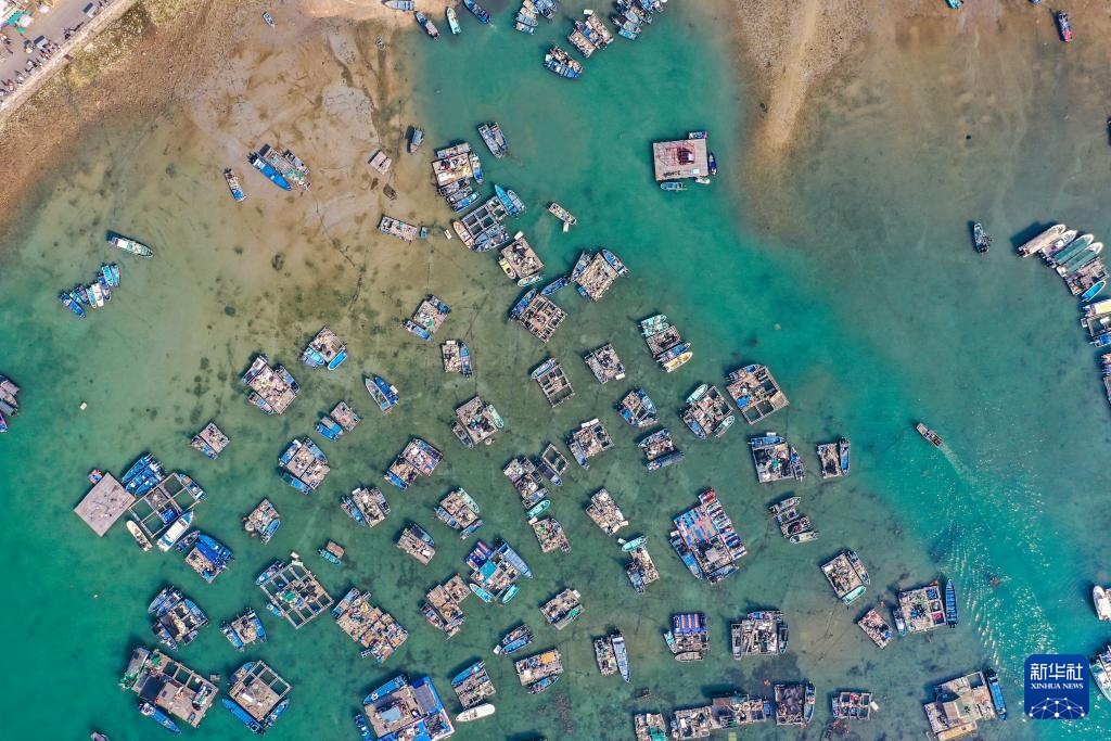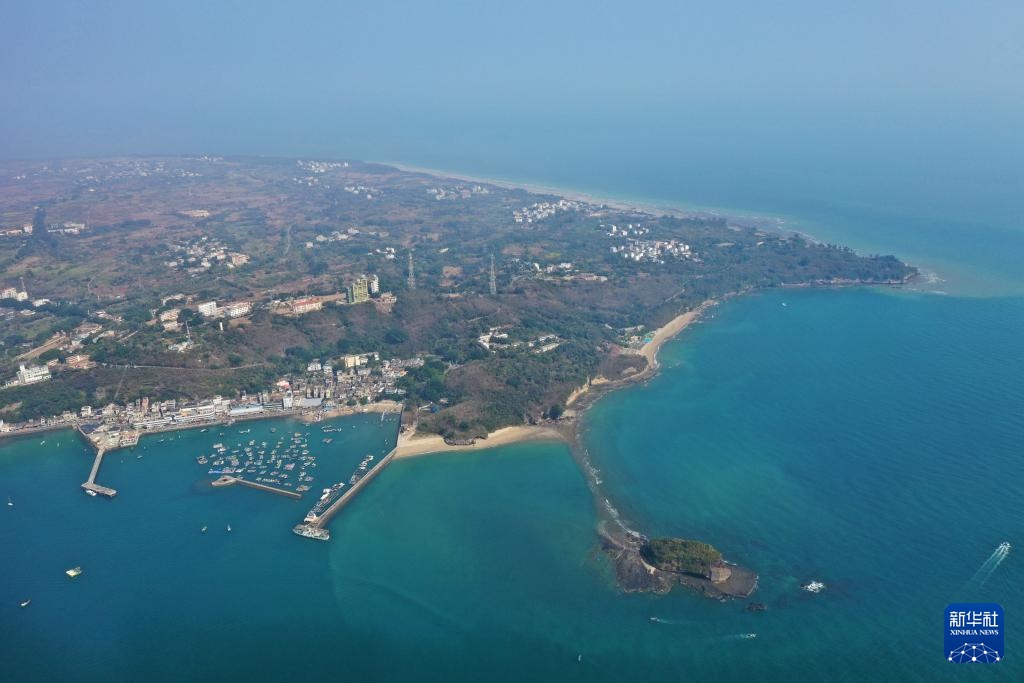 这是广西涠洲岛南湾老街附近的渔船码头(1月16日摄,无人机照片)。