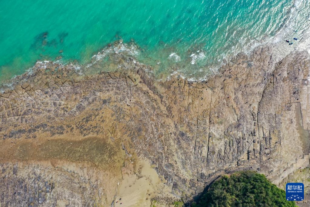 这是在广西涠洲岛拍摄的五彩滩海蚀地貌(1月16日摄,无人机照片)。