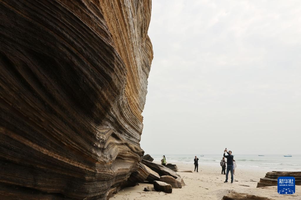 游客在广西涠洲岛滴水丹屏景区拍摄火山岩景观(1月7日摄)。