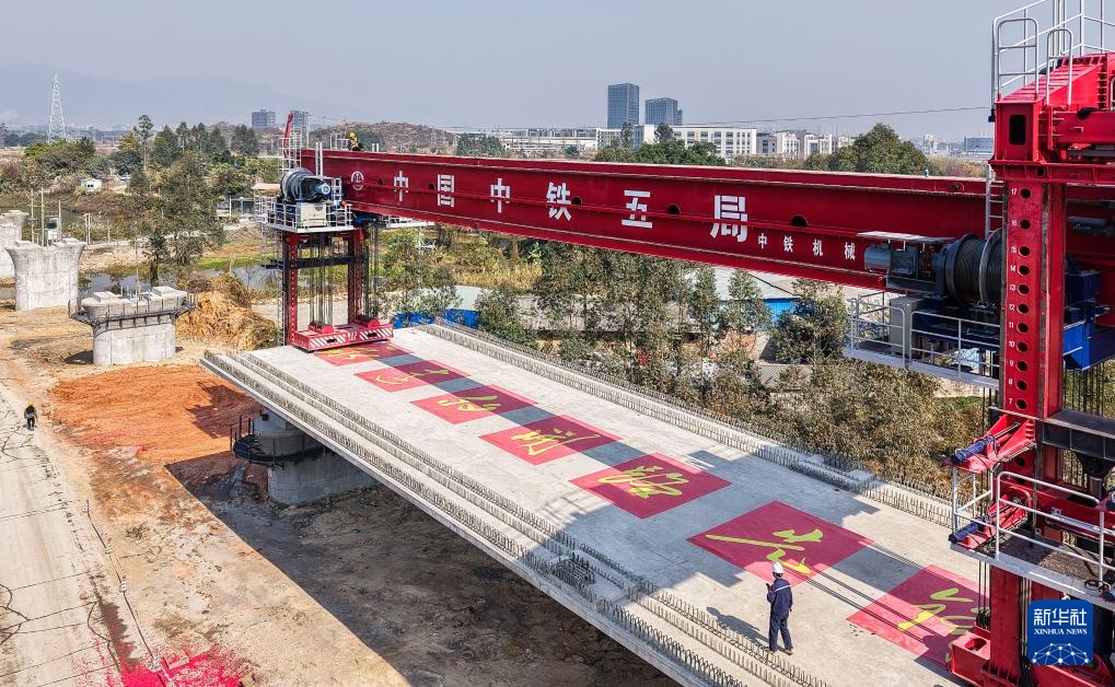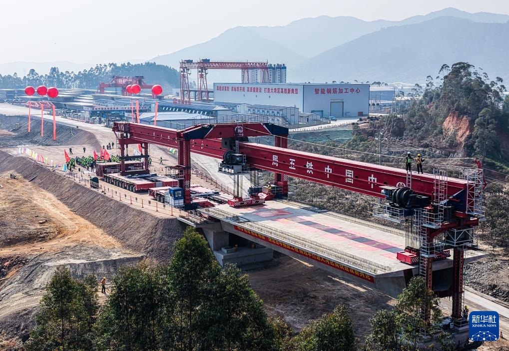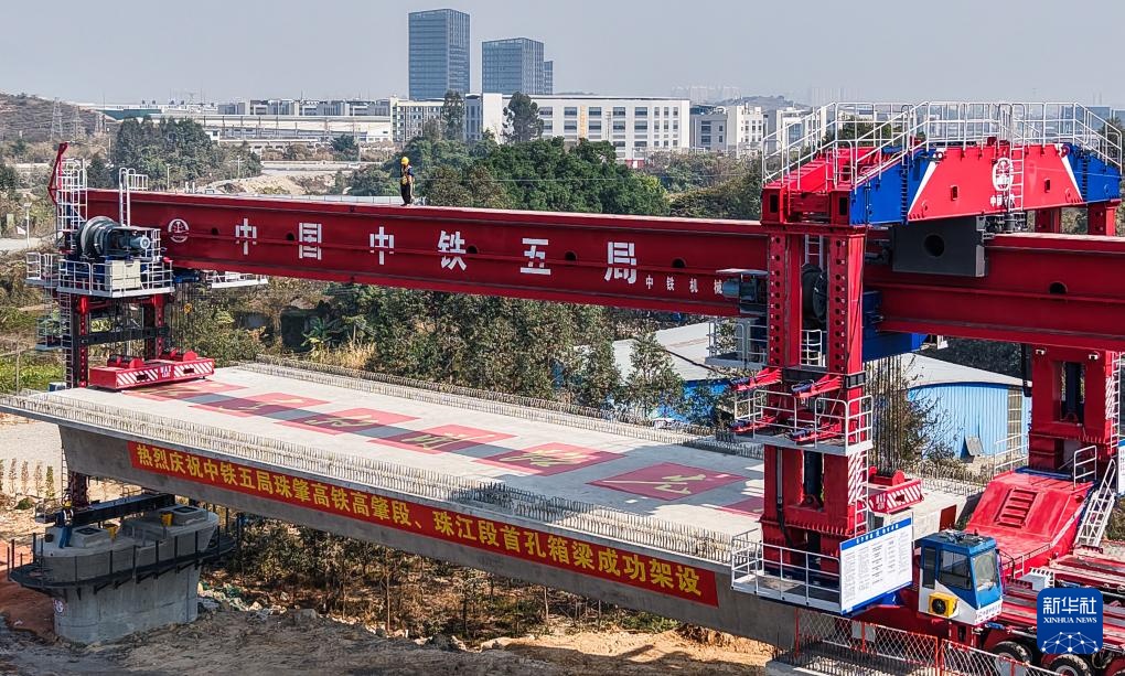 当日,珠肇高铁高肇段和珠江段首孔箱梁在肇庆市高要区双金河特大桥桥墩上成功架设。