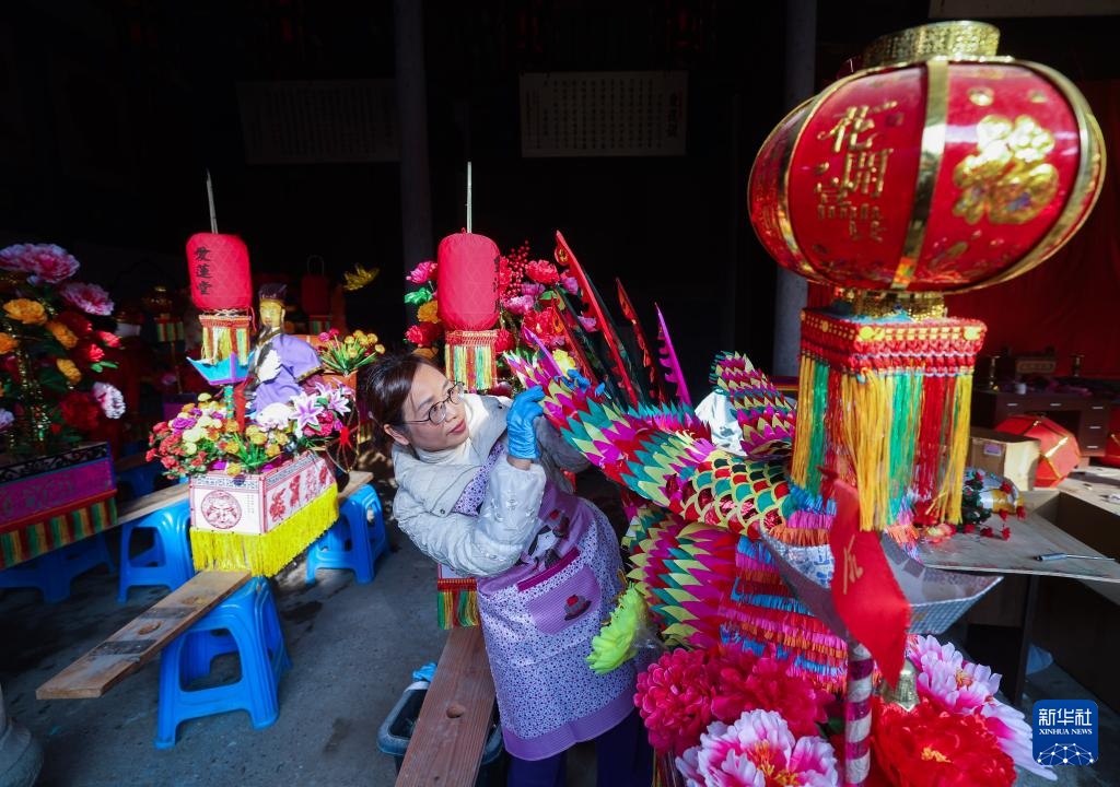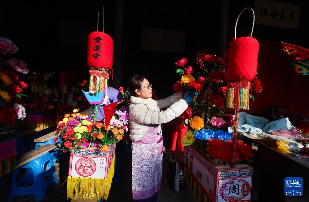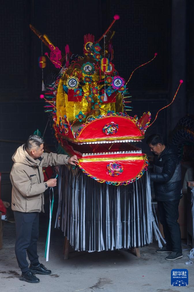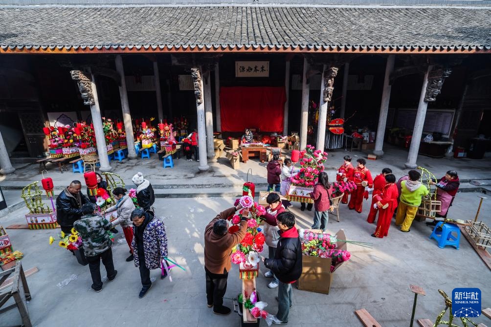 连日来,在浙江省诸暨市安华镇丰江周村的周氏宗祠内,文化特派员带领青年志愿者和村民共同赶制传统板凳龙,为新春佳节舞龙灯、祈丰年活动做准备,营造乡村传统年味。