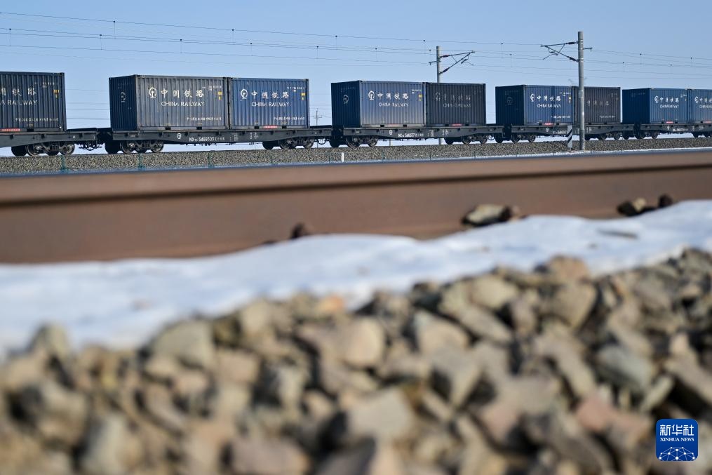 一列满载煤炭的出疆“百辆万吨”货运列车行驶在乌将铁路上(1月21日摄)。为释放通道能力,新疆铁路部门在普速铁路循环开行总重万吨以上货运列车以及卸空后百辆以上货运列车。