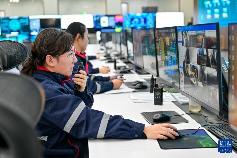 在新疆准东经济技术开发区内的新疆宜化矿业有限公司,工作人员在智能集控中心监控生产数据(1月20日摄)。