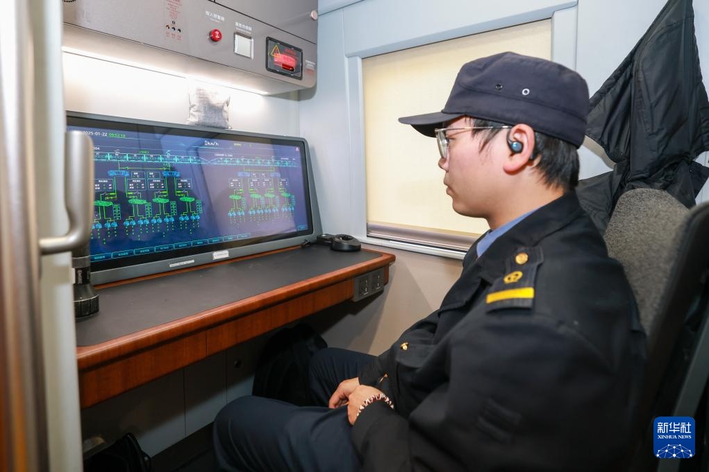 1月22日,上海动车段随车机械师邱宇在高铁热备动车组监控室内通过监控设备检查车辆状态。