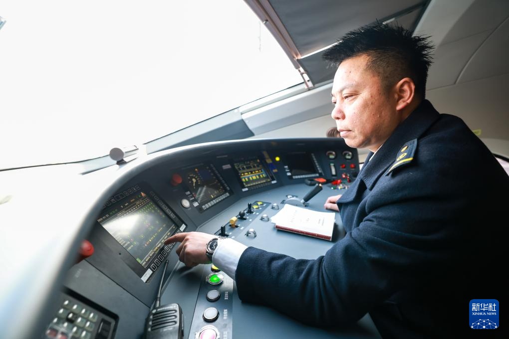 1月22日,杭州机辆段高铁司机王建国在高铁热备动车组驾驶室检查列车状态。