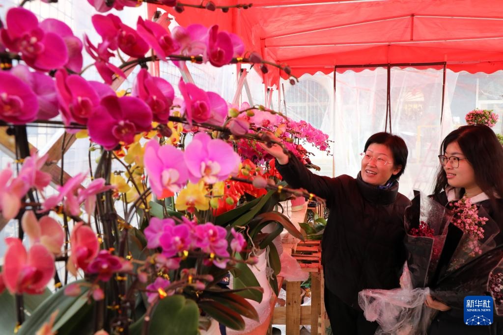 1月22日,人们在河北省唐山市丰南区在一花卉市场选购鲜花。