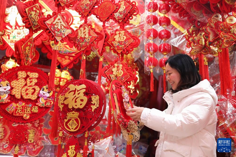 蛇年新春将至,人们选购各色年货,在浓浓年味中喜迎新春。