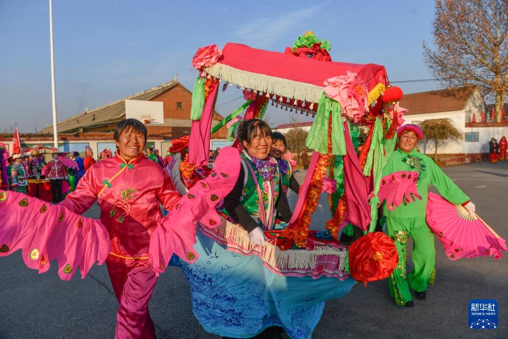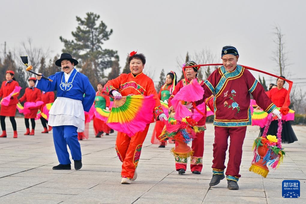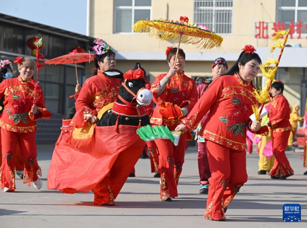 1月22日,村民在河北省石家庄市元氏县北岩村进行民俗表演。
