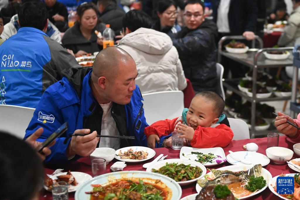 当日,200余名大部分来自外地的快递员及家属受邀在浙江杭州菜鸟智慧物流网络有限公司总部参加一场“年夜饭”活动,提前在异乡感受春节团聚的温暖。