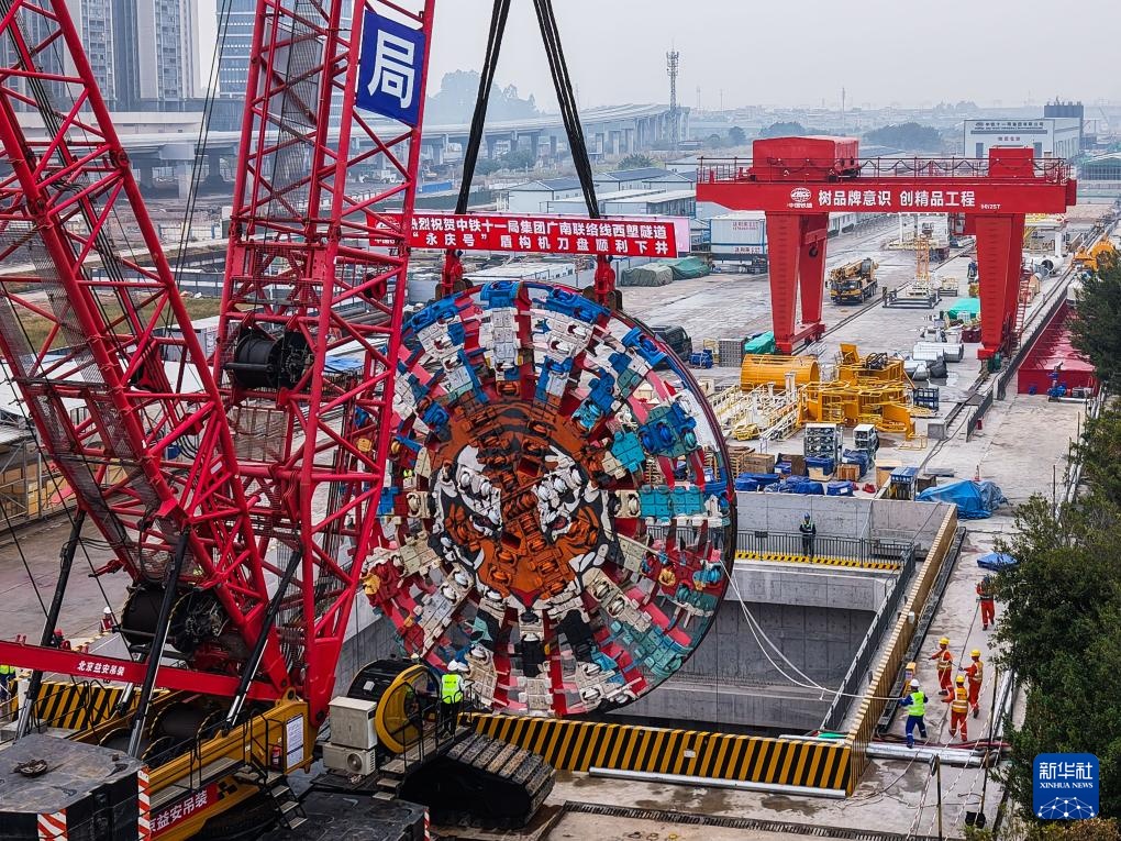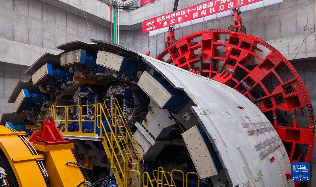 当日,由中铁十一局承建的广(广州站)南(广州南站)联络线“永庆号”盾构机刀盘吊装下井,重达374吨的刀盘与盾构机主体精准“合体”,广州“高铁进城”建设将进入盾构施工阶段。广南联络线建成后,京广高铁、广深港高铁、贵广高铁、南广高铁等铁路线可直达位于中心城区的广州火车站,广州大都会交通枢纽功能将进一步增强。