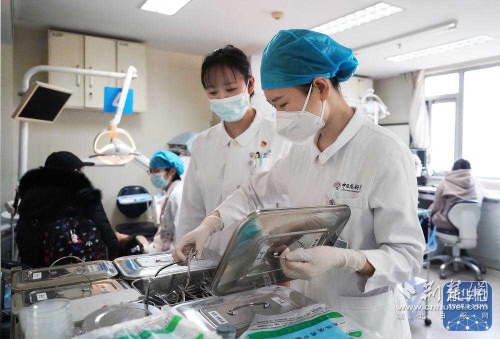 1月23日,在中日友好医院儿童牙颌面畸形早期矫治中心,护士孔祥俊(右一)做治疗前的准备工作。