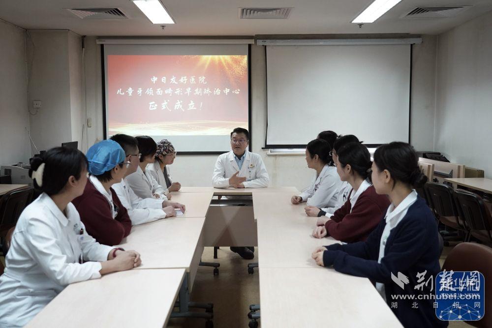 1月23日,中日友好医院儿童牙颌面畸形早期矫治中心主任徐宝华医生(中)与医护人员交流。