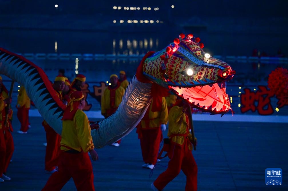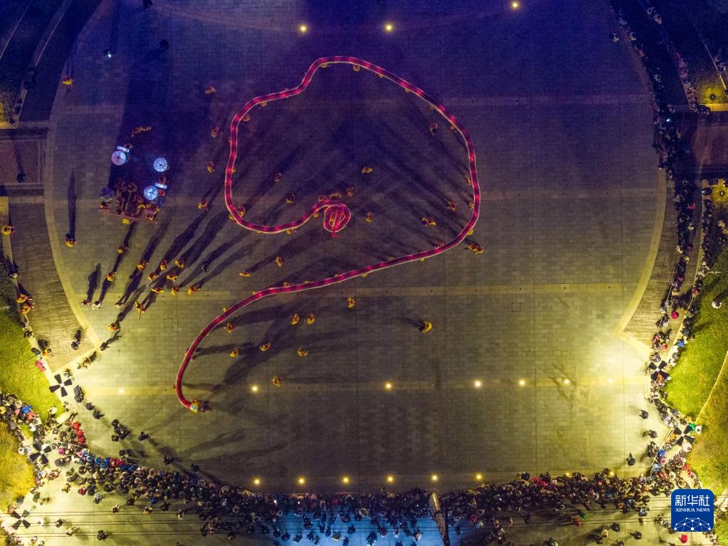春节临近,安徽省合肥市肥东县国家级非遗项目“肥东洋蛇灯”出灯。长度达128米的“肥东洋蛇灯”演绎“长蛇出海”“走径折”“四蟒翻身”“盘宝塔”等舞蹈动作,寓意腾跃奋进、国泰民安。 “肥东洋蛇灯”诞生于肥东县包公镇大邵村,距今有六百多年历史。