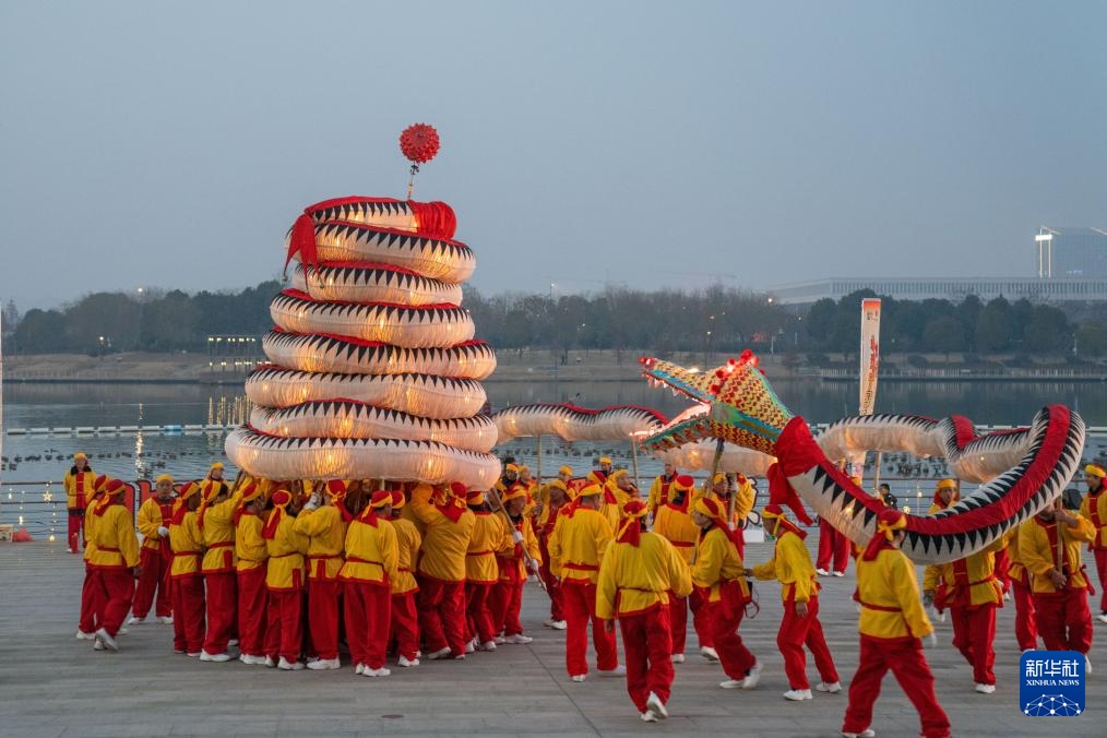 1月22日拍摄的“肥东洋蛇灯”表演。