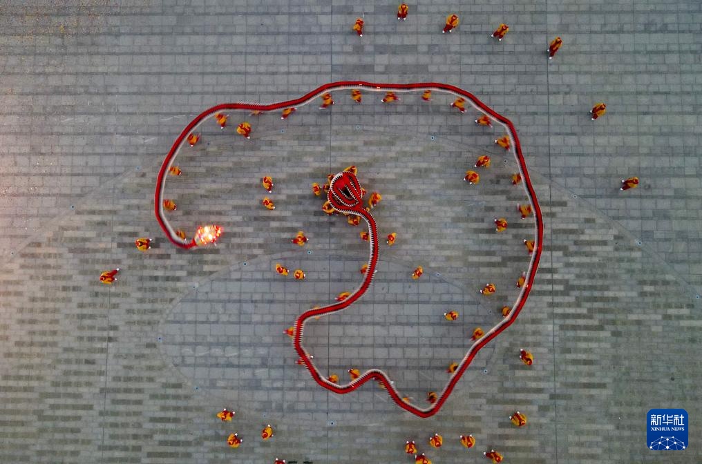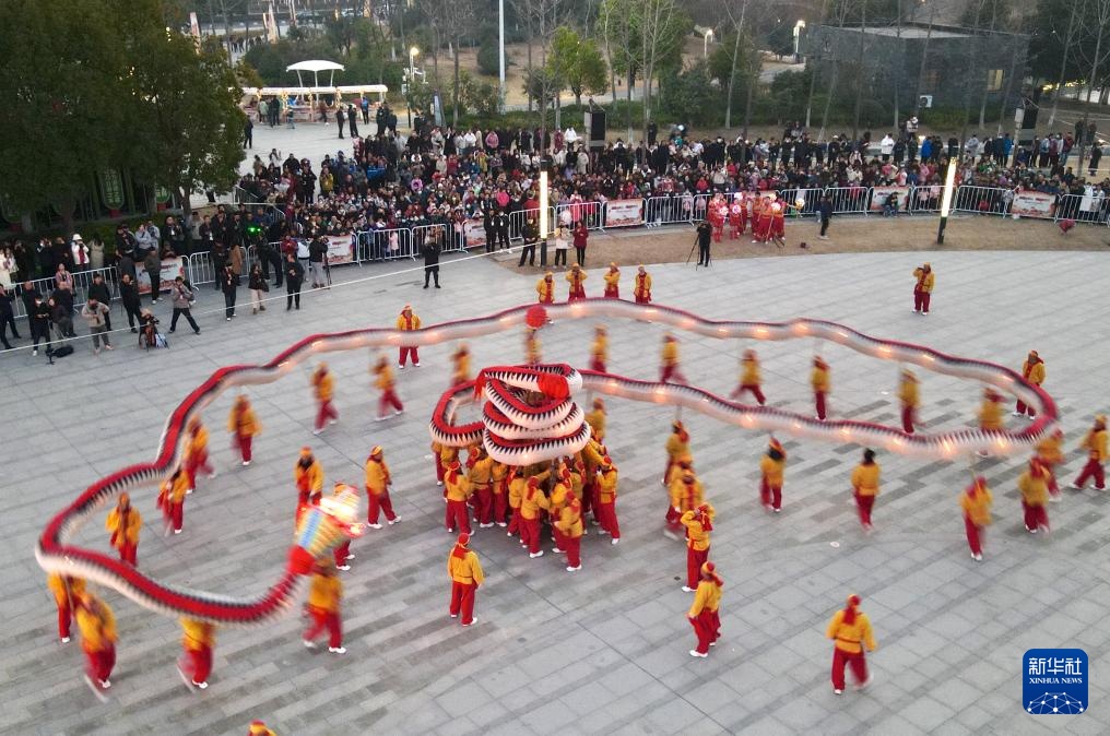 1月22日拍摄的“肥东洋蛇灯”表演(无人机照片)。