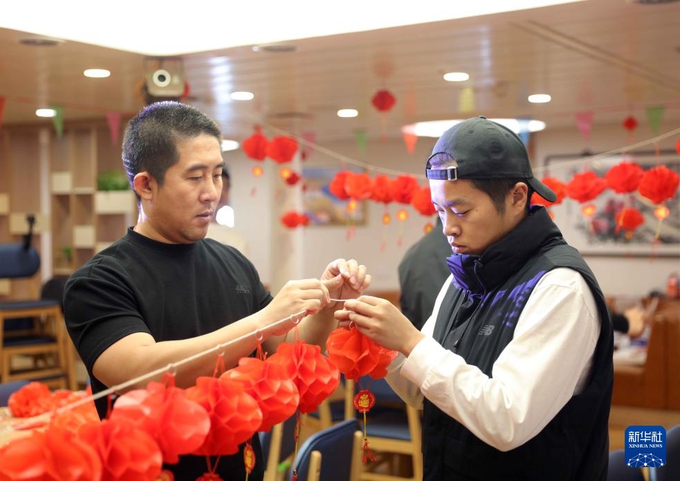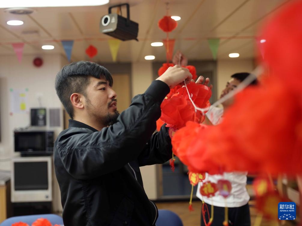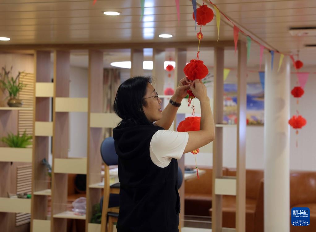 春节将近,考察队在船上挂起红灯笼、贴上福字,营造出温馨的过年氛围。远离家乡千万里的地方,也升腾起了浓浓的年味……
