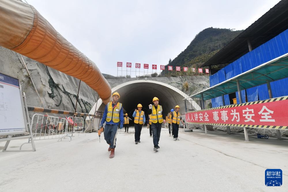 中铁二十局的工人在柳州市柳江区三都镇鱼宜高速公路建设工地作业(1月23日摄)。