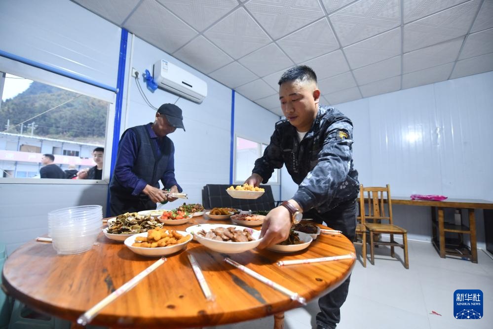 在柳州市柳江区三都镇鱼宜高速公路建设工地,中铁二十局的工人在准备团圆饭(1月22日摄)。