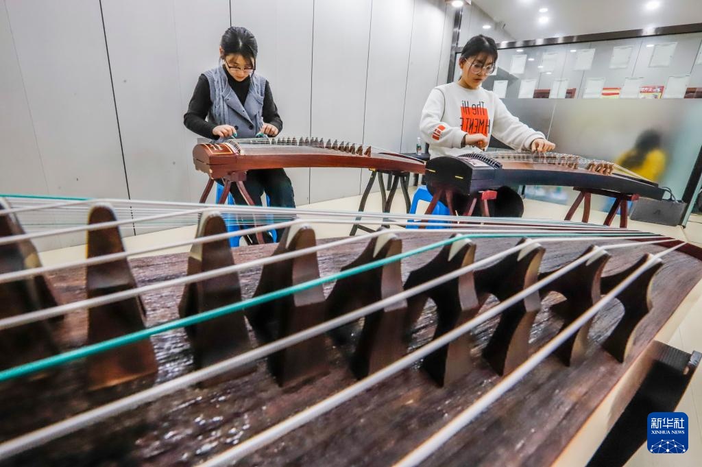 1月21日,学生在河北省遵化市一家培训机构练习演奏古筝。