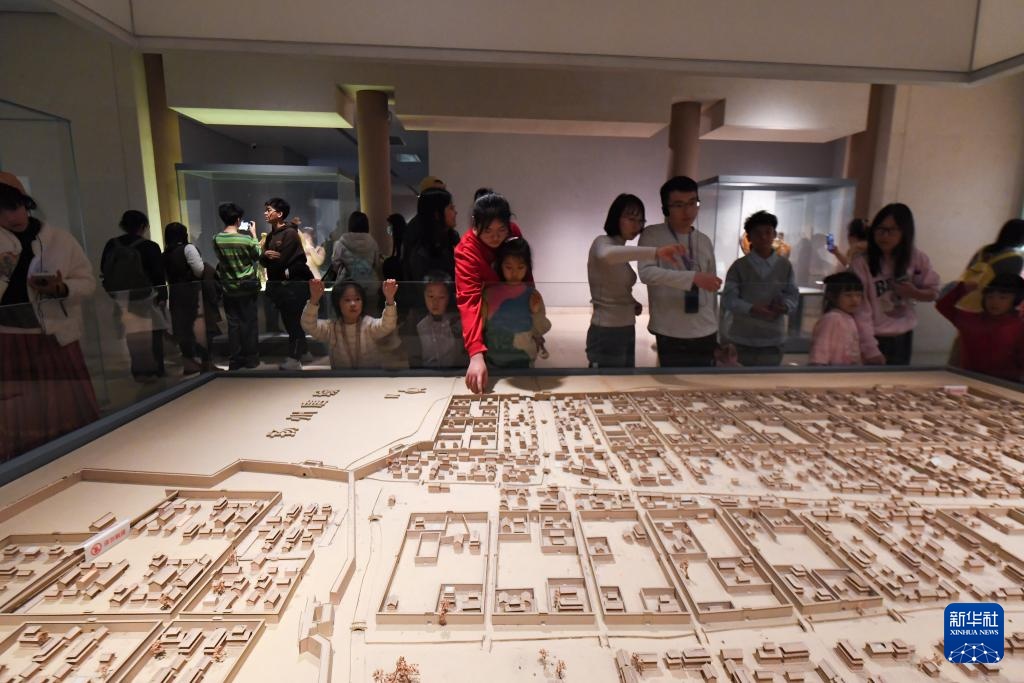 1月22日,家长带着孩子在南京博物院参观。