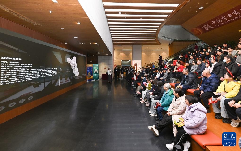 1月24日,中国考古博物馆工作人员在活动现场为观众介绍展出的文物。