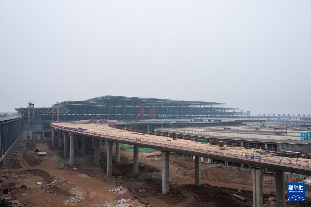 这是1月24日拍摄的长沙机场改扩建工程T3航站楼施工现场。