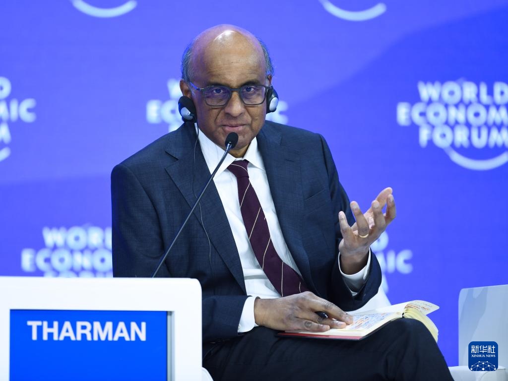 1月24日,新加坡总统尚达曼在瑞士达沃斯举行的世界经济论坛2025年年会上发言。