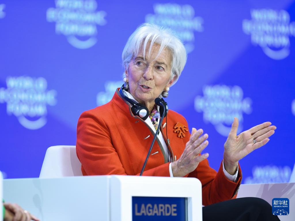 1月24日,欧洲中央银行行长拉加德在瑞士达沃斯举行的世界经济论坛2025年年会上发言。