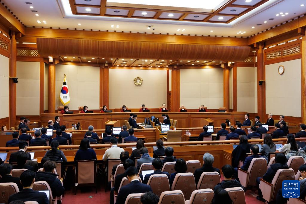 韩国宪法法院23日下午举行总统弹劾案第四次正式辩论并启动证人问询程序。被拘留总统尹锡悦再次出席辩论,前国防部长官金龙显作为证人出庭。