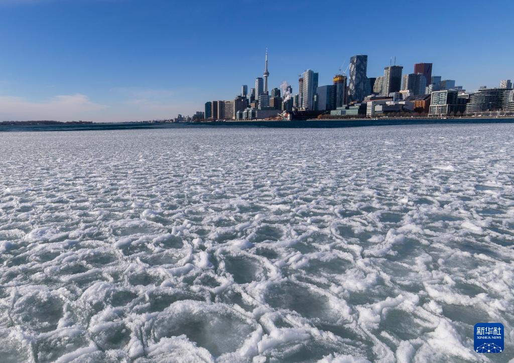 这是1月21日在加拿大多伦多拍摄的结冰的安大略湖。