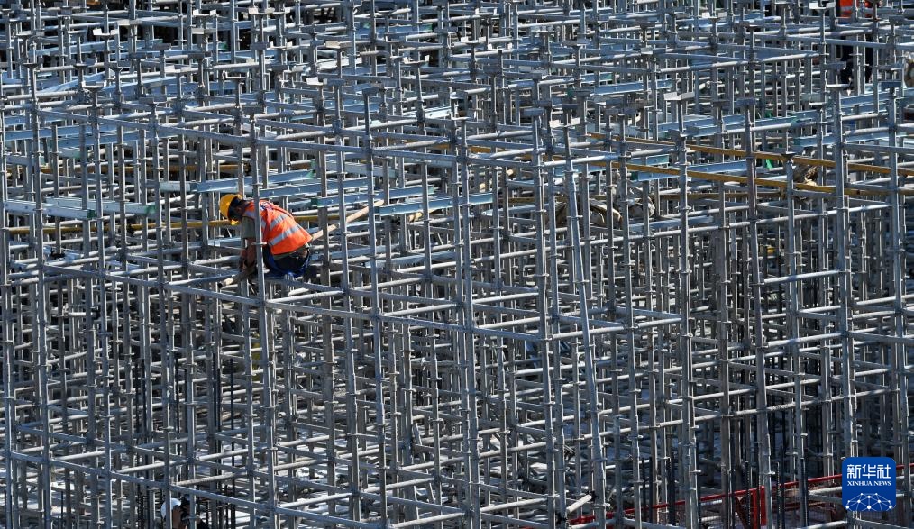 1月25日,工人在中国海南国际文物艺术品交易中心和海南国际文化交流中心项目建设现场施工。