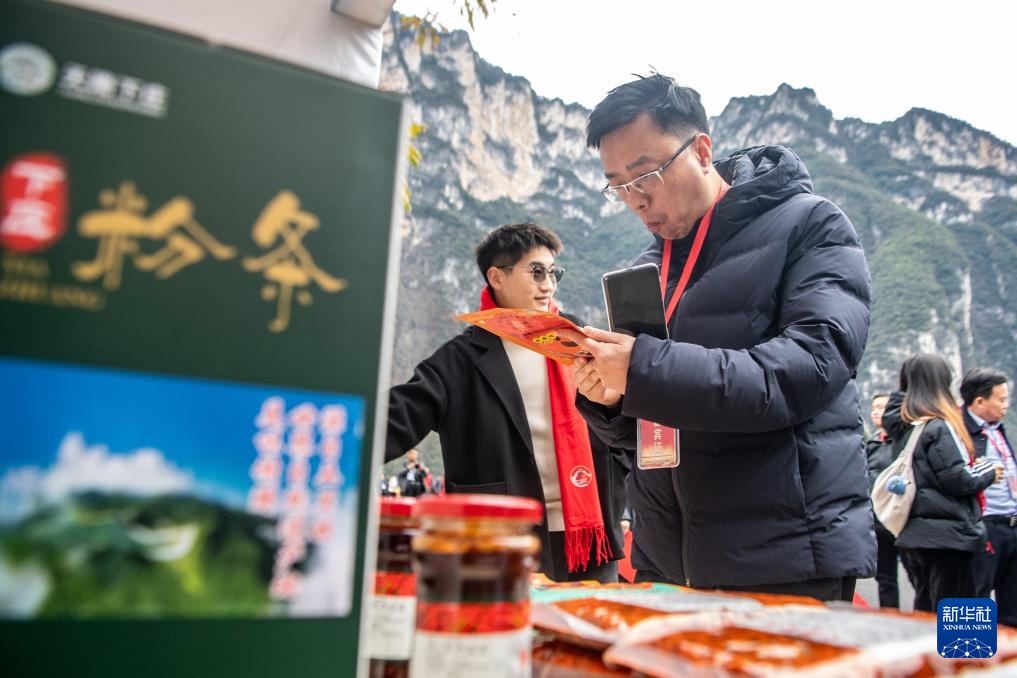 1月25日,在重庆市巫山县竹贤乡下庄村,人们在乡村集市上选购土特产。