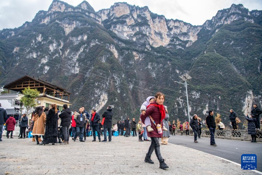1月25日,在重庆市巫山县竹贤乡下庄村,村民和游客在乡村迎新活动上游玩。