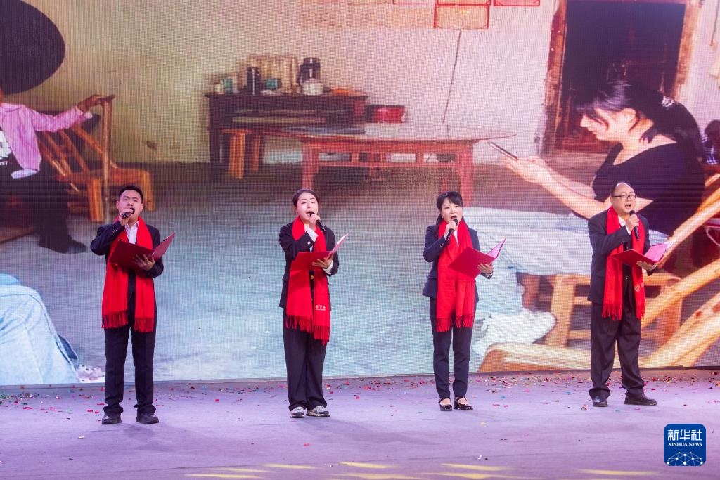 1月25日,在重庆市巫山县竹贤乡下庄村,村民在“村晚”上表演节目。