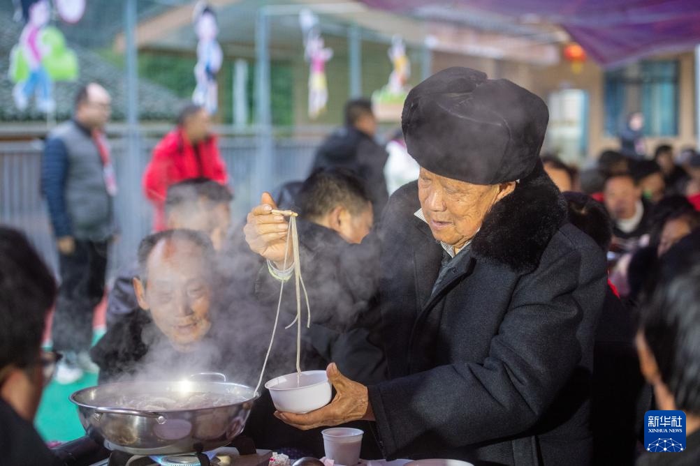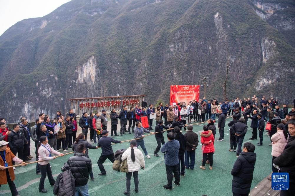 春节前夕,在重庆市巫山县竹贤乡下庄村,400多名村民和游客欢聚在一起,看“村晚”、吃坝坝宴,举办乡村运动会,欢欢喜喜迎新年。