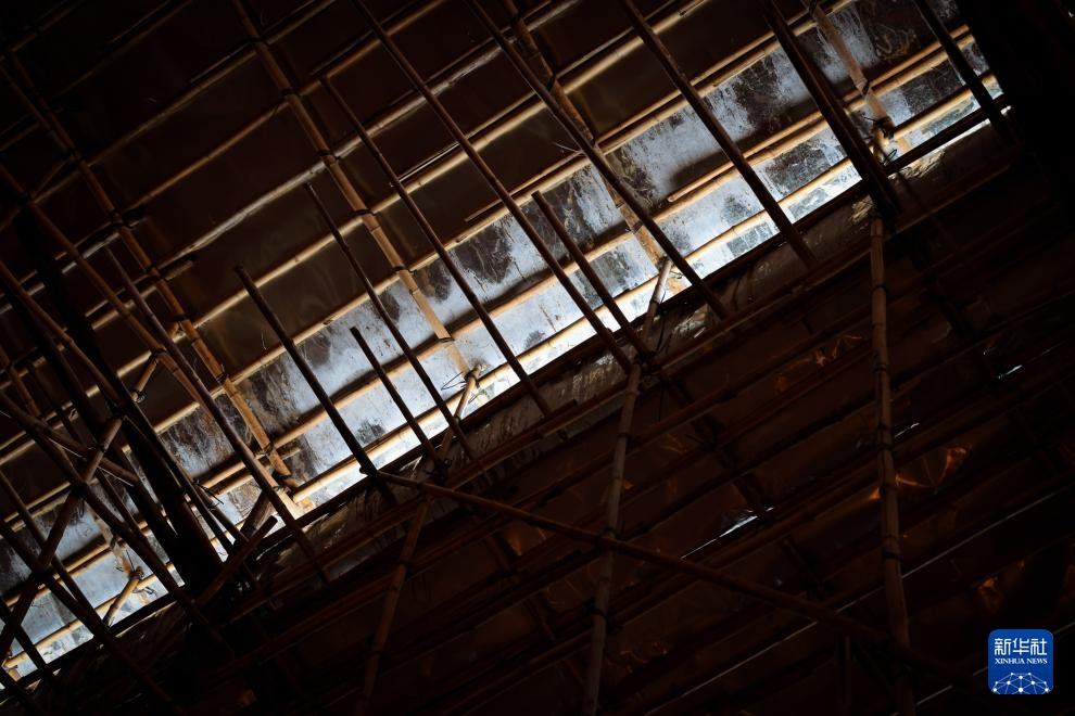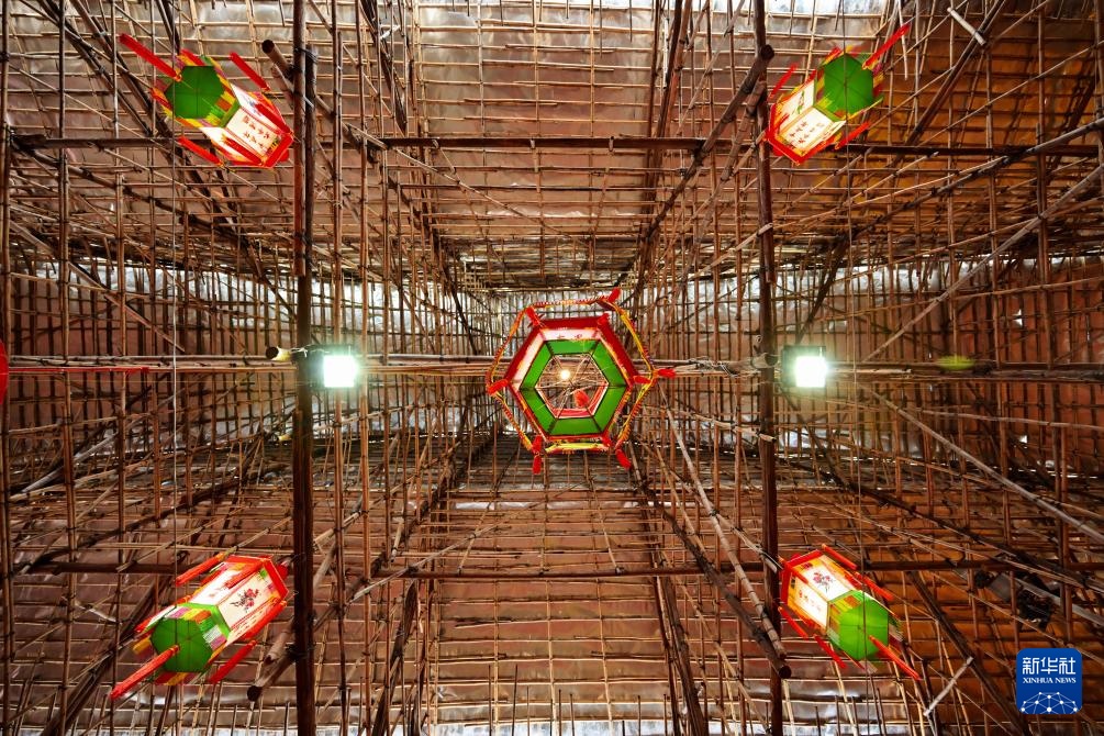 这是2024年11月11日拍摄的香港元朗厦村乡太平清醮活动戏棚的局部。