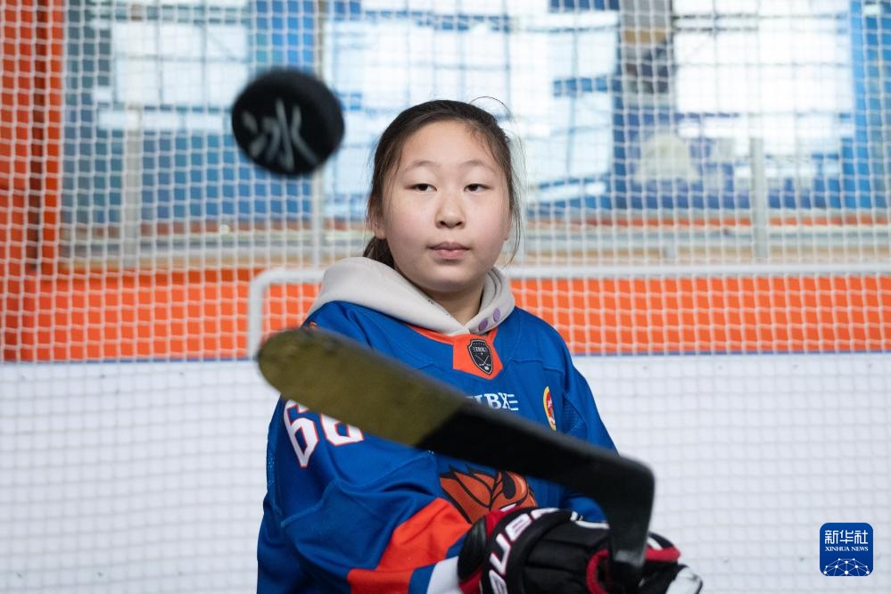 1月26日,二马路小学翼虎冰球队队员王祎萱在冰鑫冰上运动中心进行训练。