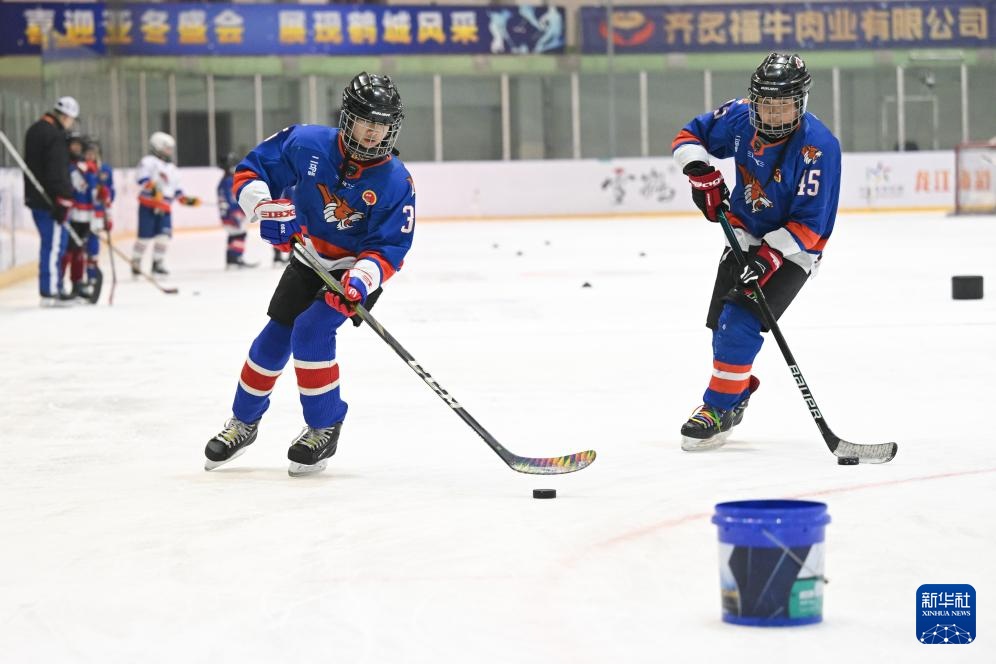 随着哈尔滨第九届亚冬会临近,冰雪运动在黑龙江火热进行。在齐齐哈尔市,二马路小学翼虎冰球队的冰球少年正在冰球教练、原国家男子冰球队队员崔志楠的带领下进行寒假定期训练。