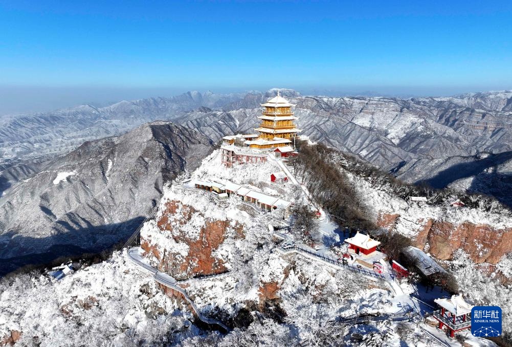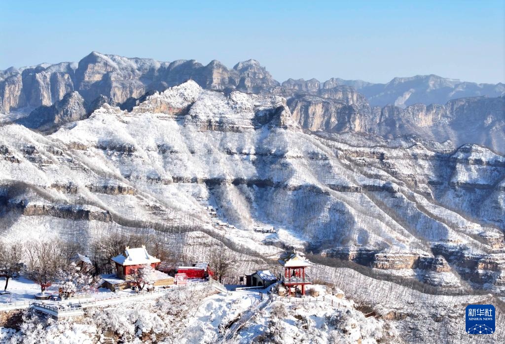 1月26日拍摄的河南省济源市王屋山雪景(无人机照片)。
