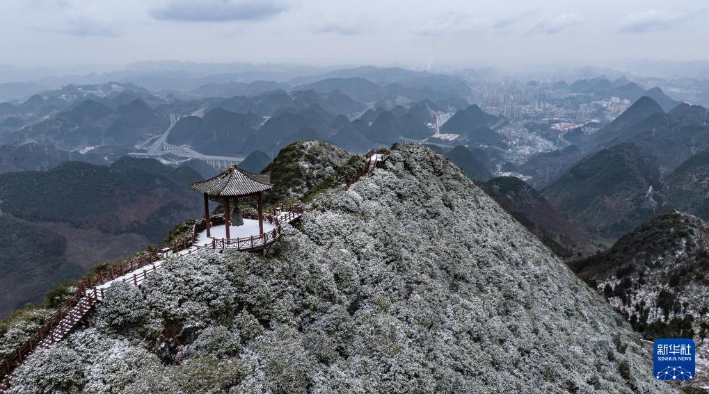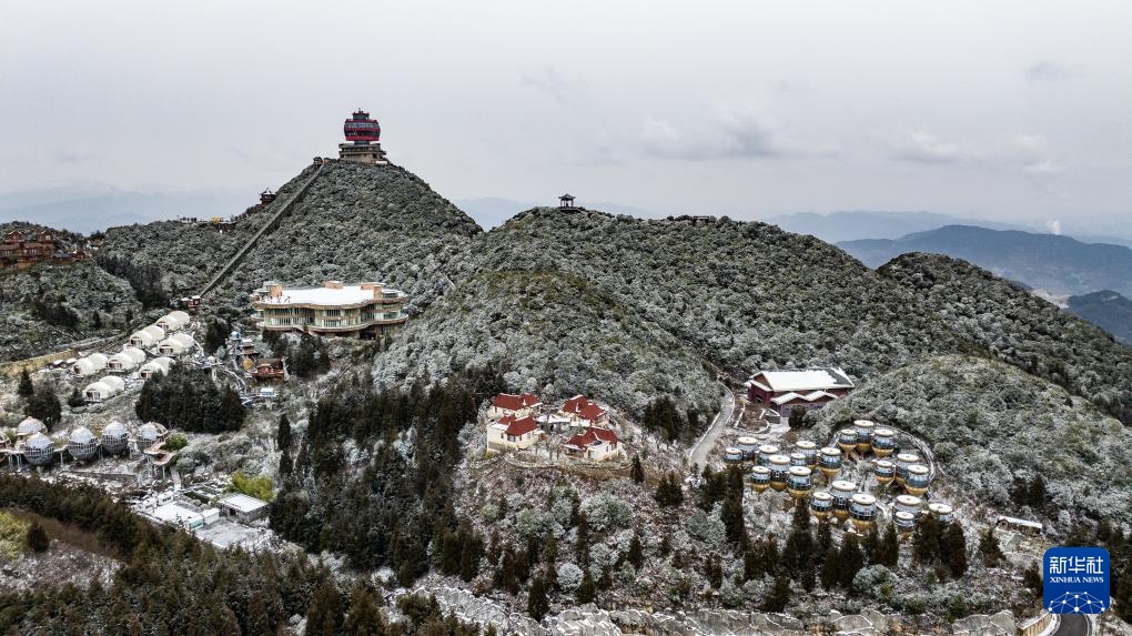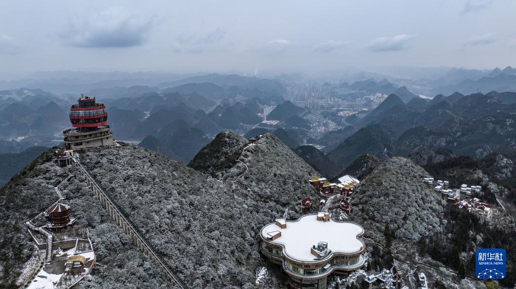 1月26日在贵州省六盘水市钟山区双戛街道拍摄的雪景(无人机照片)。