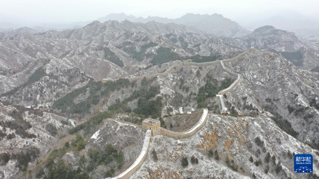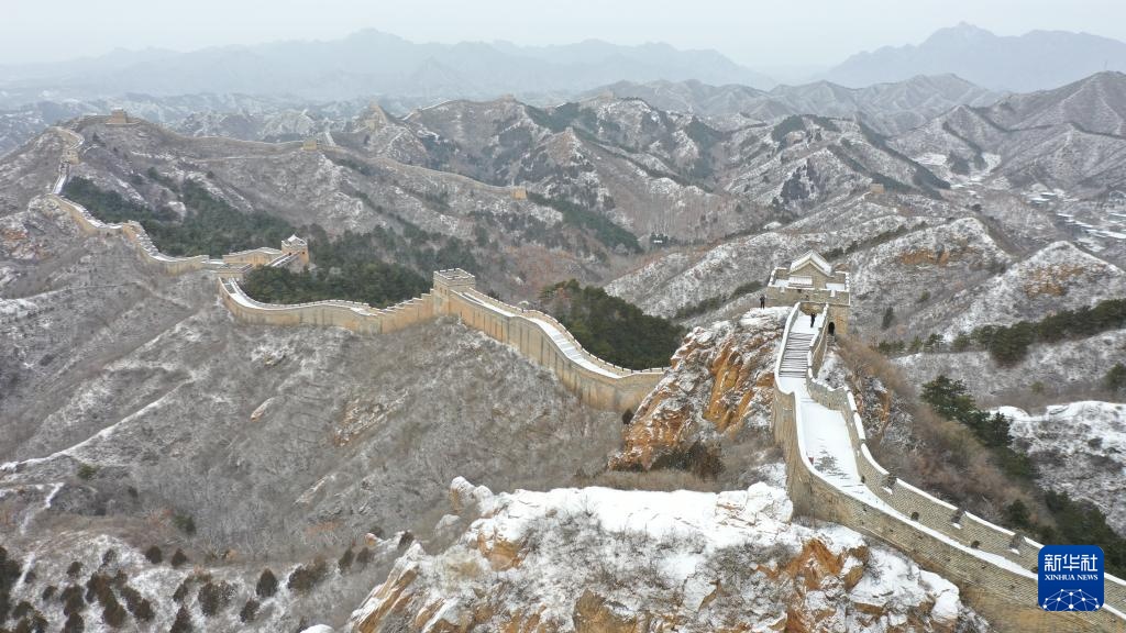 1月26日在河北省承德市滦平县拍摄的金山岭长城雪景(无人机照片)。