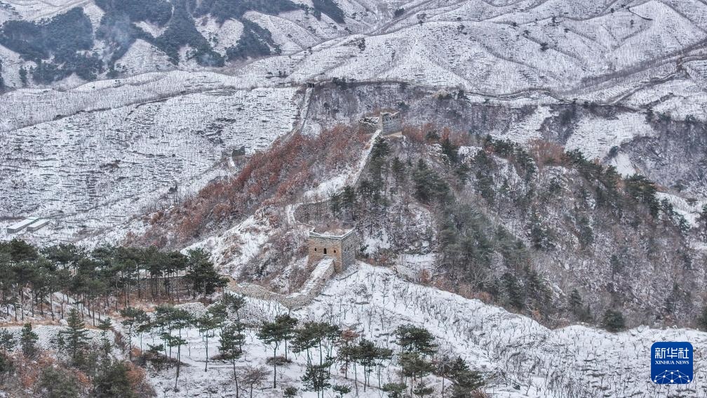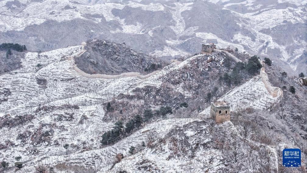1月26日拍摄的河北省遵化市长城雪景(无人机照片)。