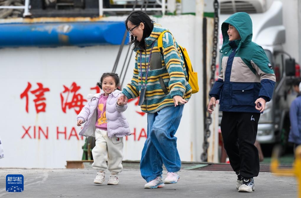 1月26日,在海南省海口市秀英港,旅客走下客滚船。