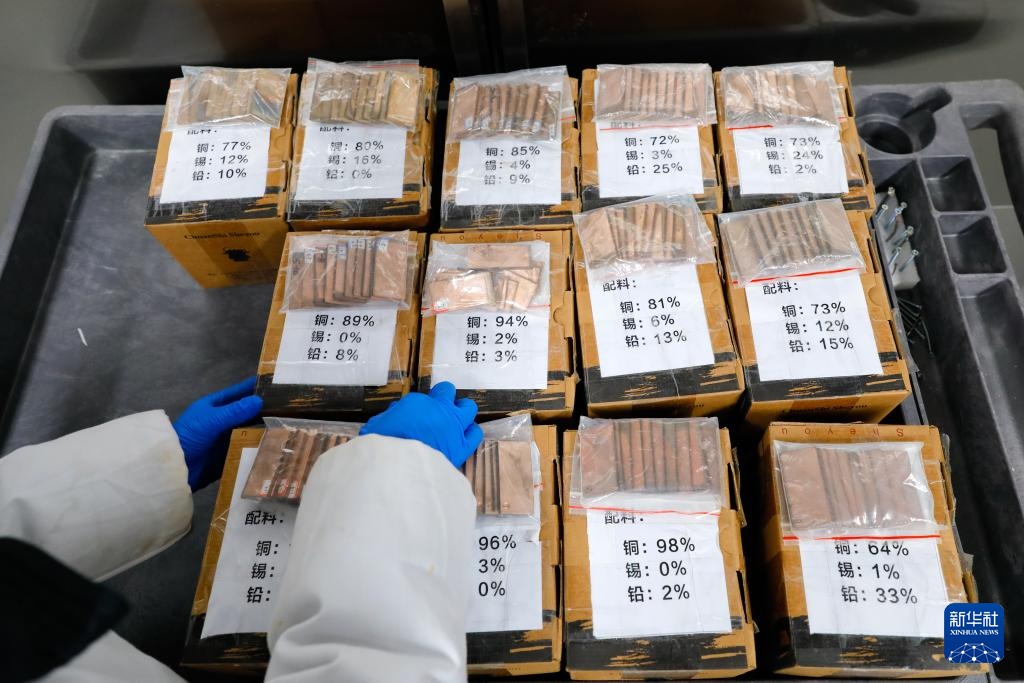 文物保护人员在研究不同合金配比的青铜样块在土壤埋藏环境中的腐蚀情况(2024年12月18日摄)。